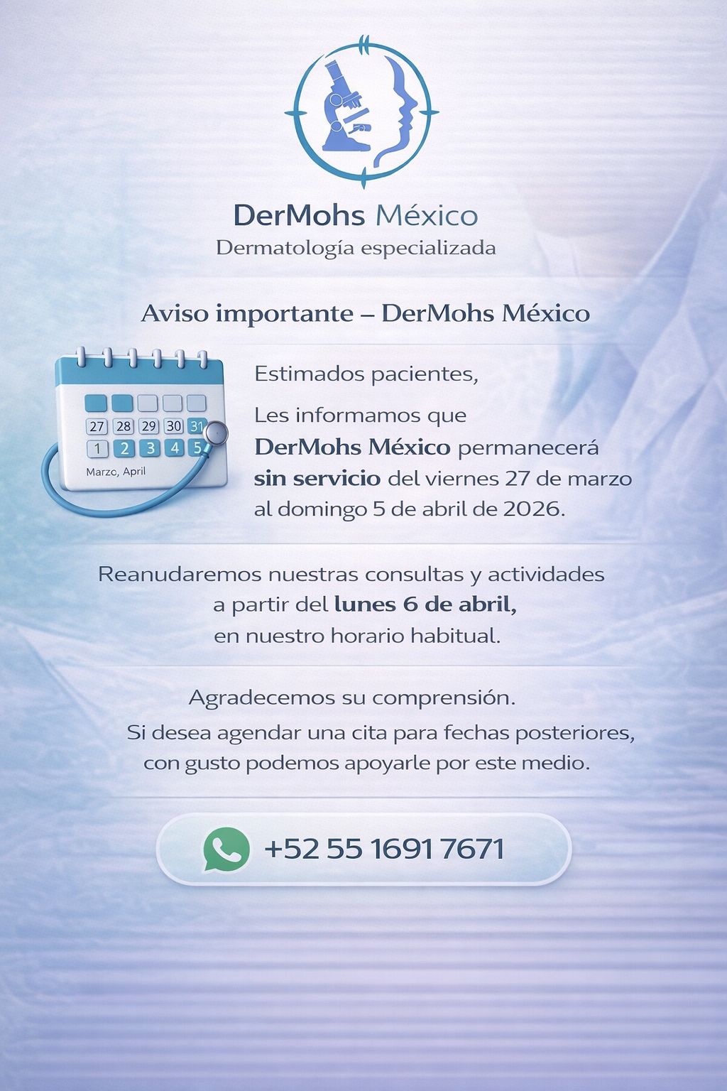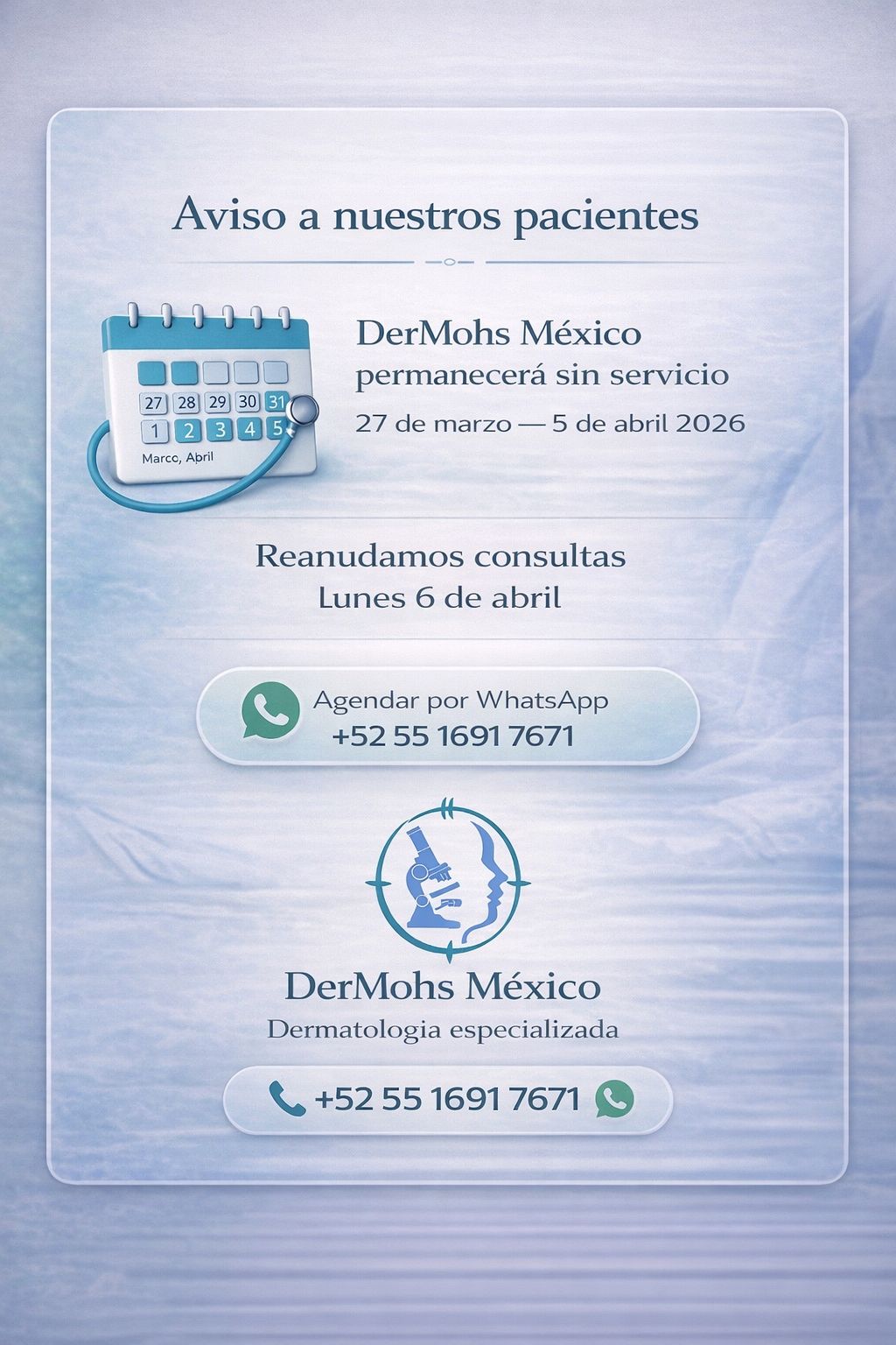 ¡Bienvenidos al Blog de DerMohs! Aquí exploraremos el fascinante mundo de la dermatología, compartiendo información valiosa sobre el cuidado de la piel, las últimas innovaciones en el tratamiento del cáncer cutáneo, y la precisión de la Cirugía de Mohs. Nuestro objetivo es ser tu fuente confiable de conocimiento para mantener una piel sana y hermosa. ¡Acompáñanos en este viaje!